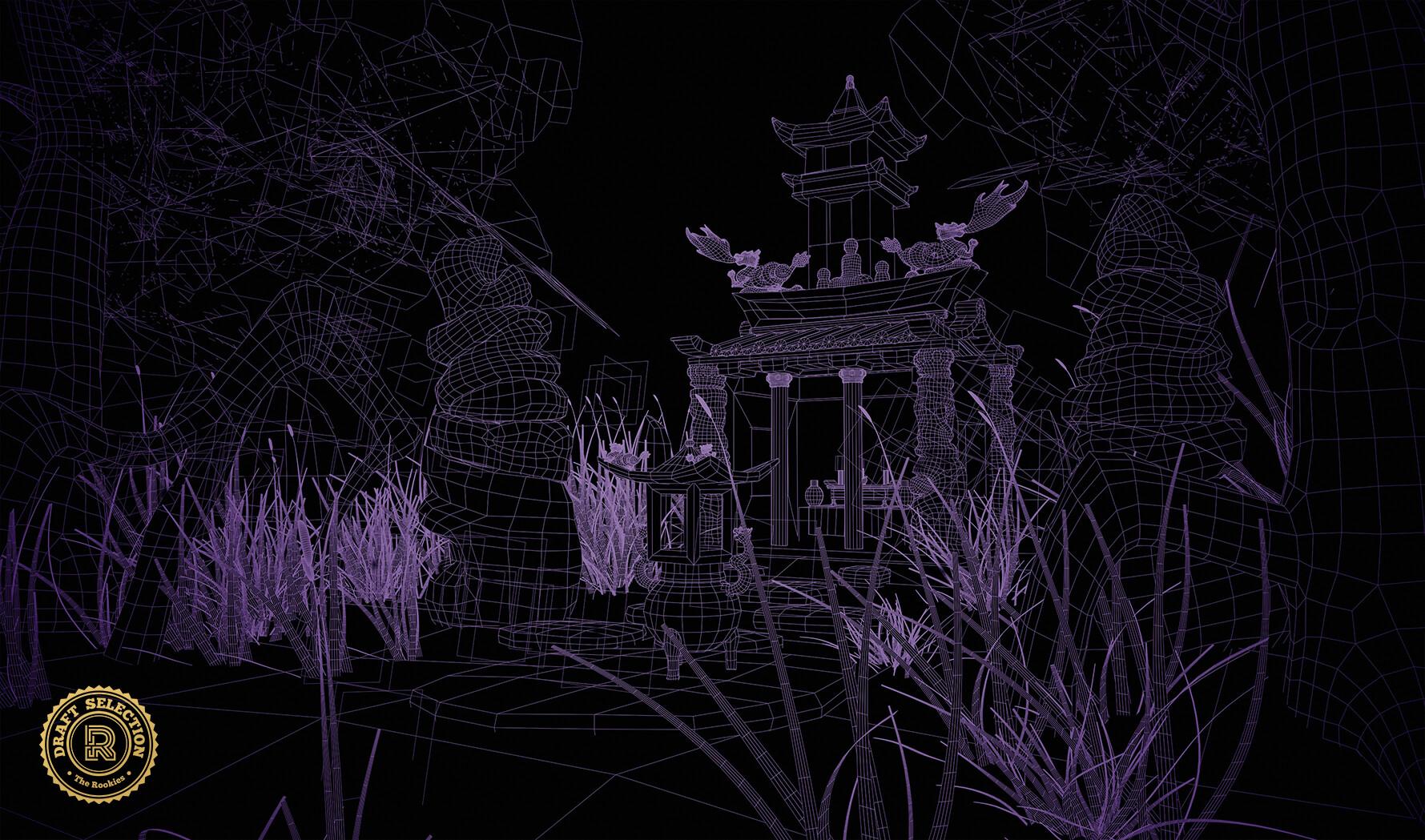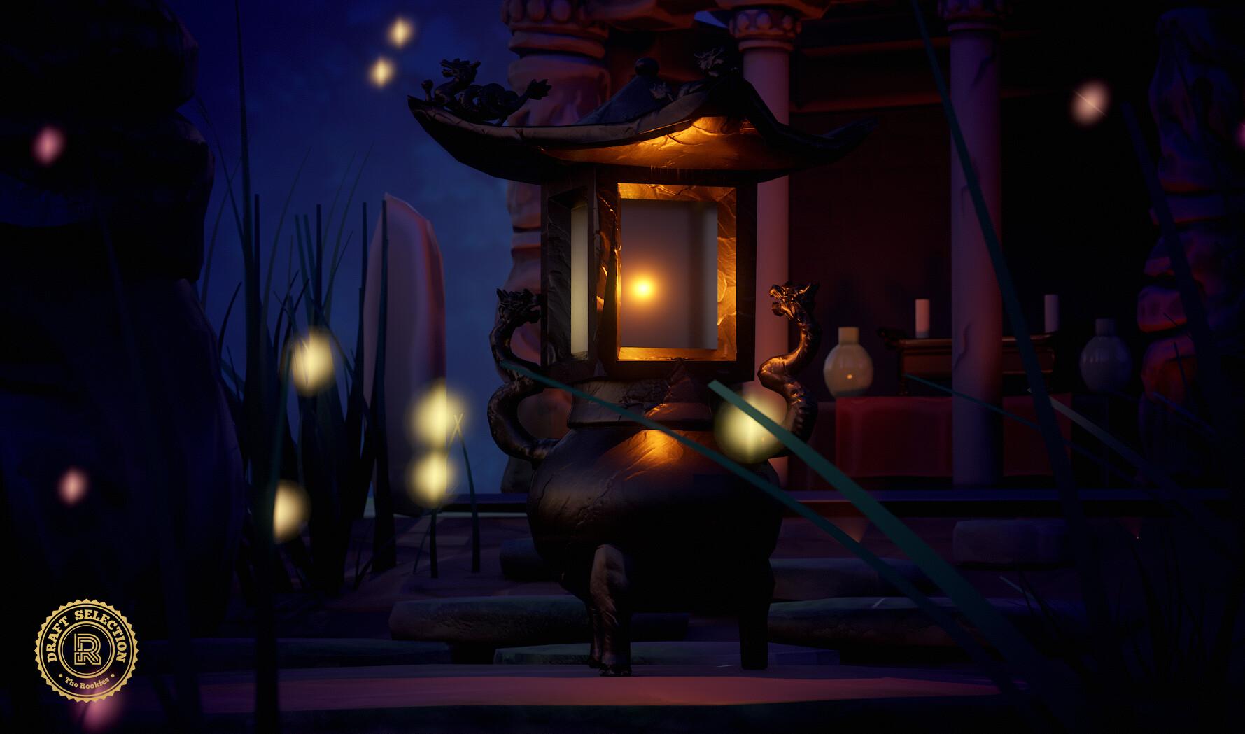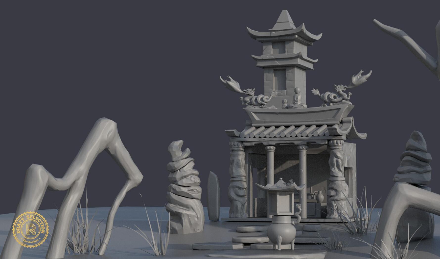 Material definition via Substance Painter. We utilized a layered shader approach: a base obsidian ceramic, topped with a metallic gold leaf, finished with a procedural dust and wear layer.